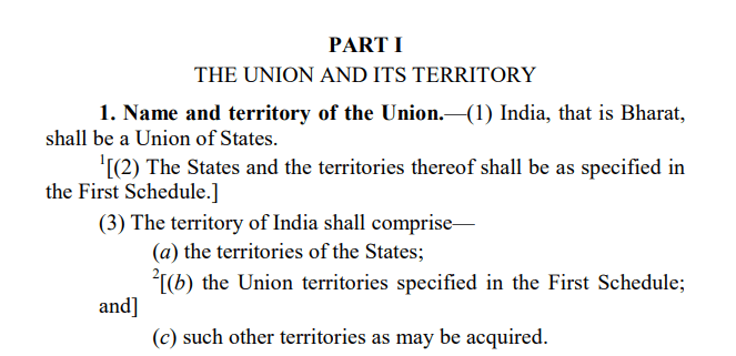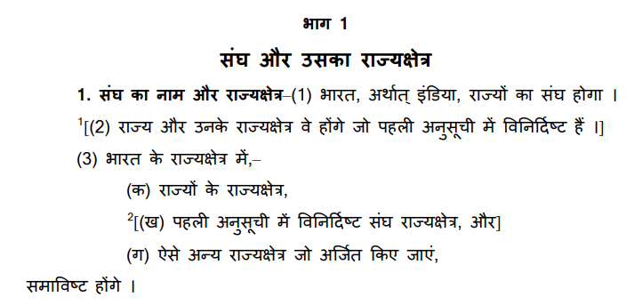 (hi.) “भारत, अर्थात इंडिया, राज्यों का संघ होगा।“