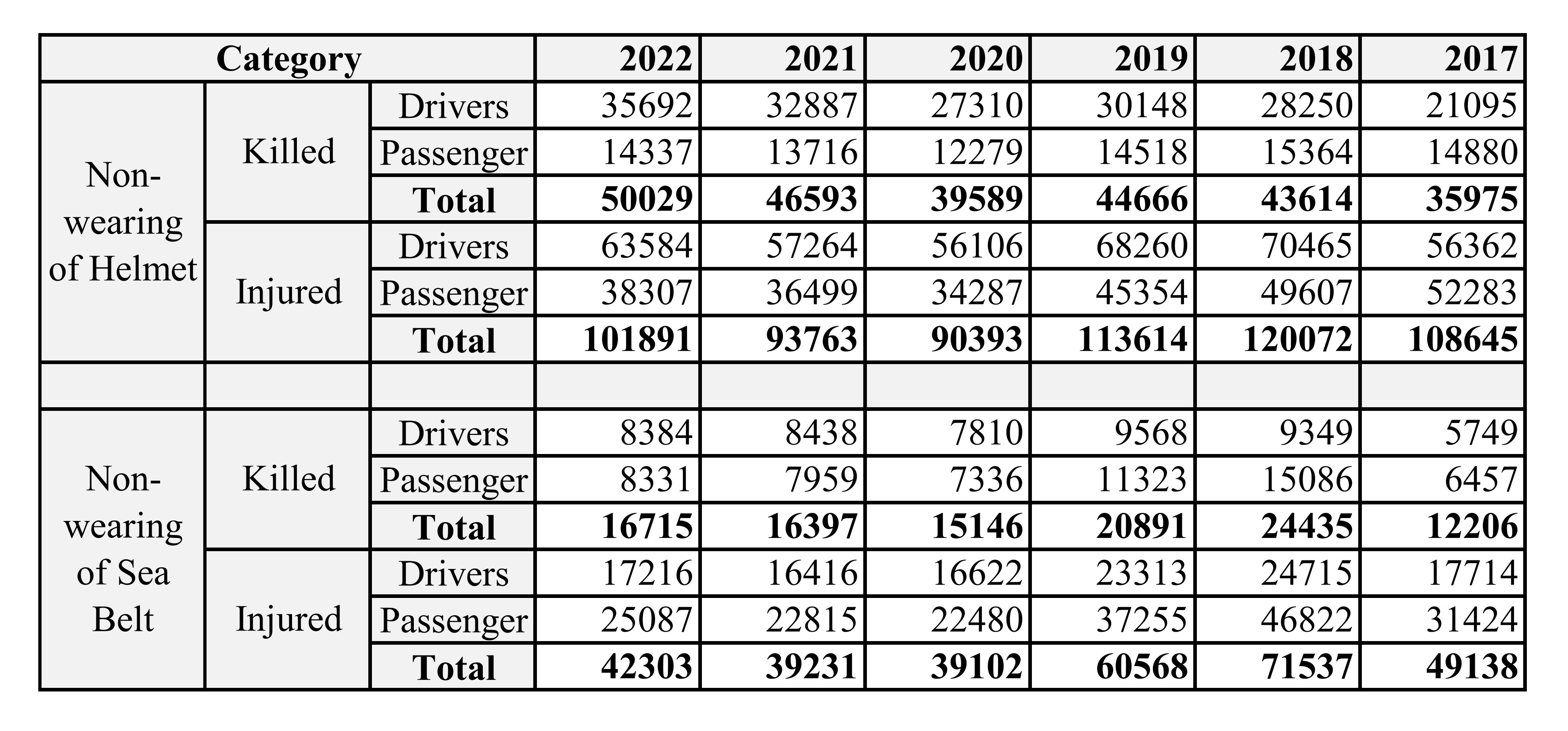 The first step to safety is upon the driver and passenger themselves, viz., driving four-wheel car with wearing a seat belt and driving two-wheeler with wearing helmet.