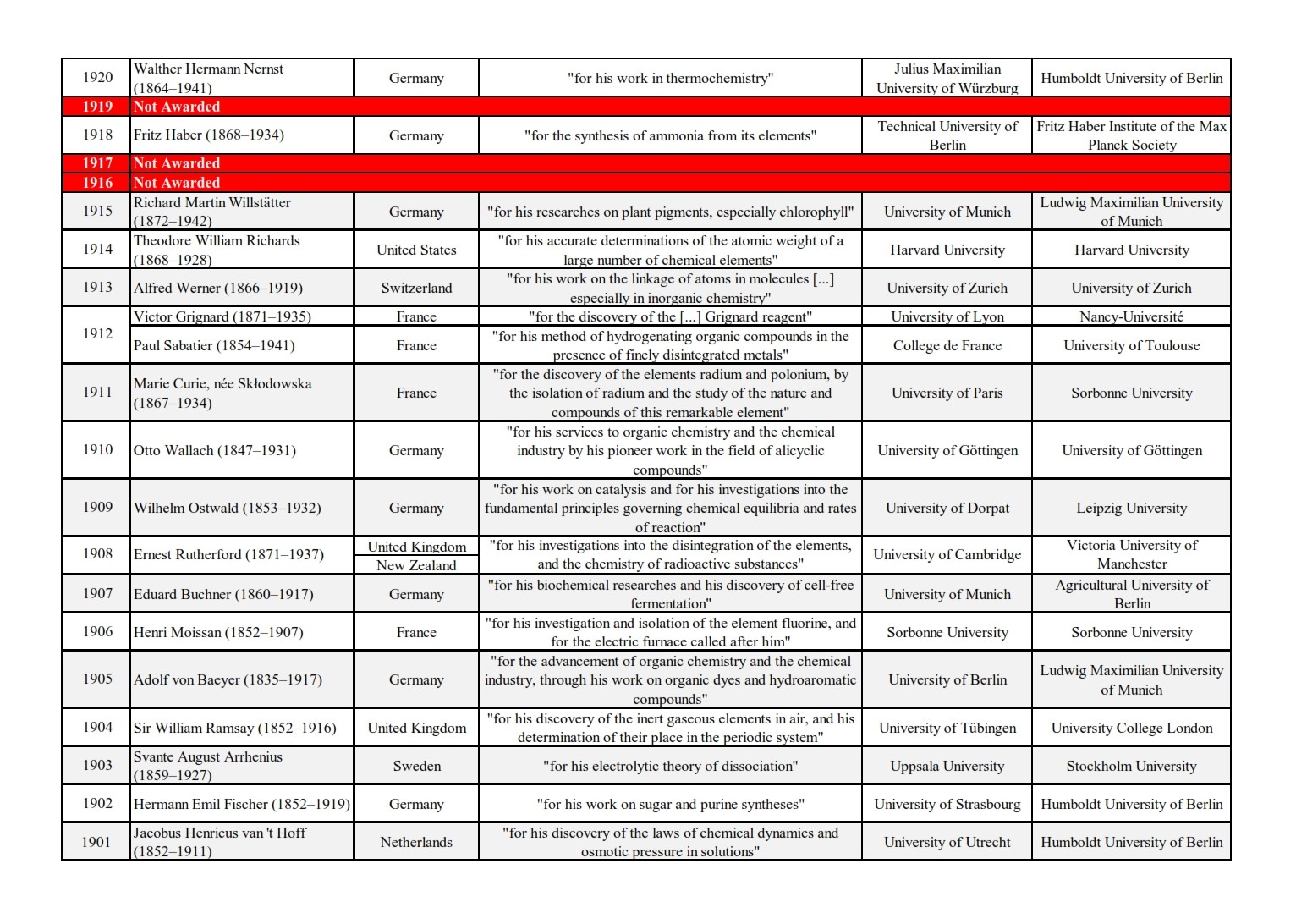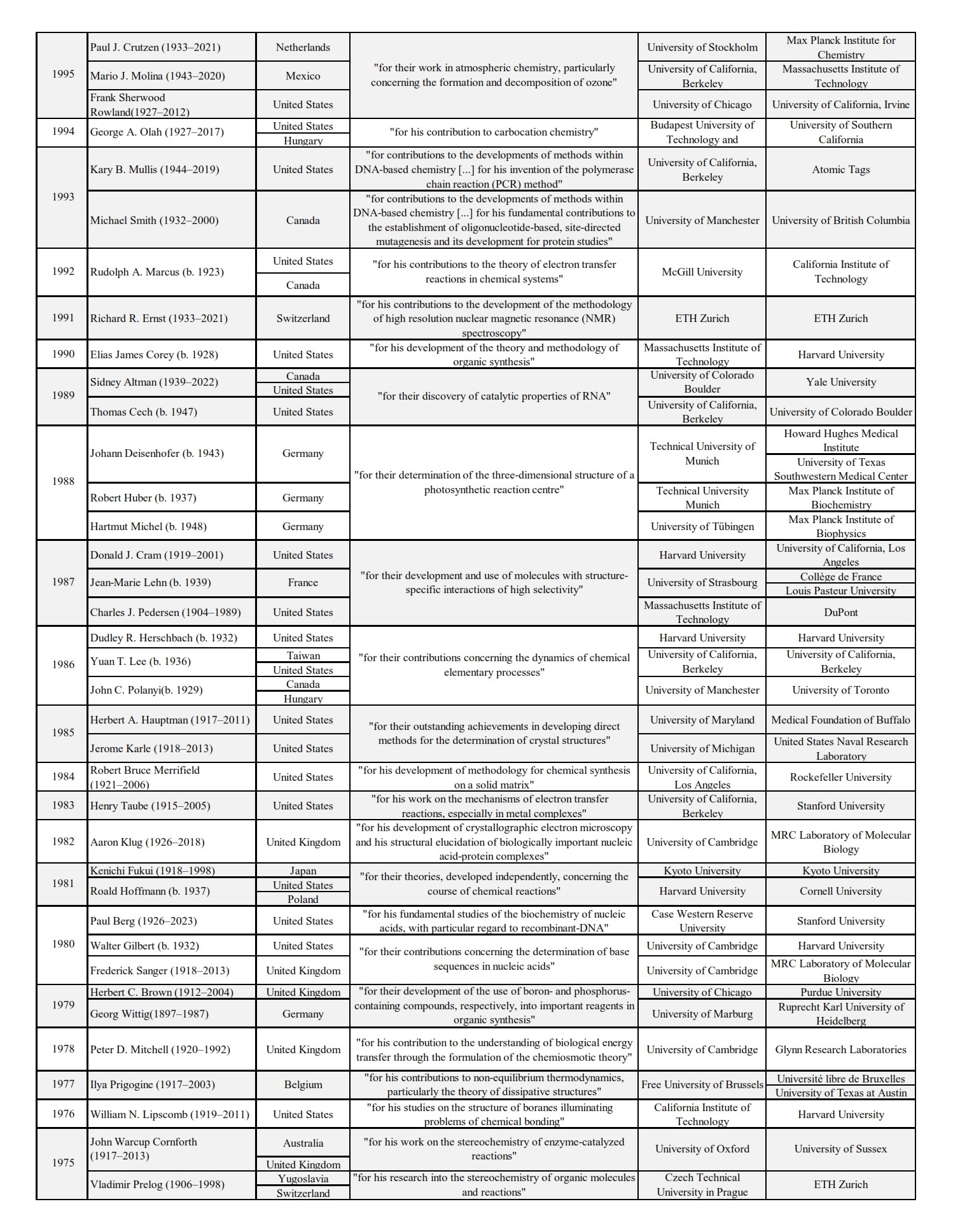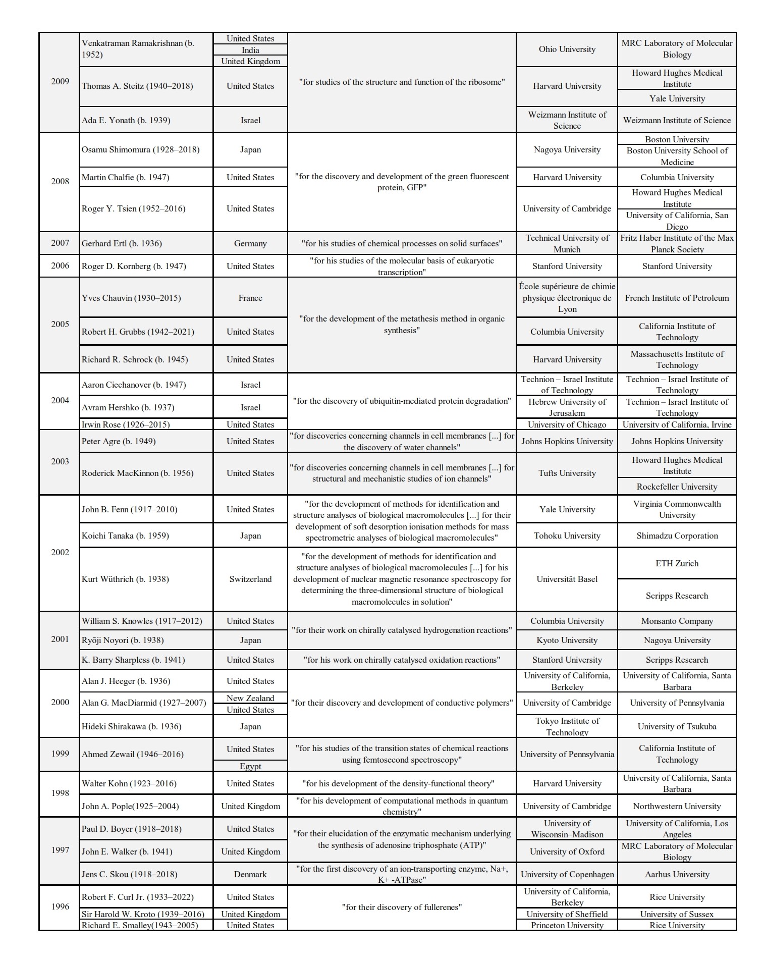 Nobel Laureates: Chemistry