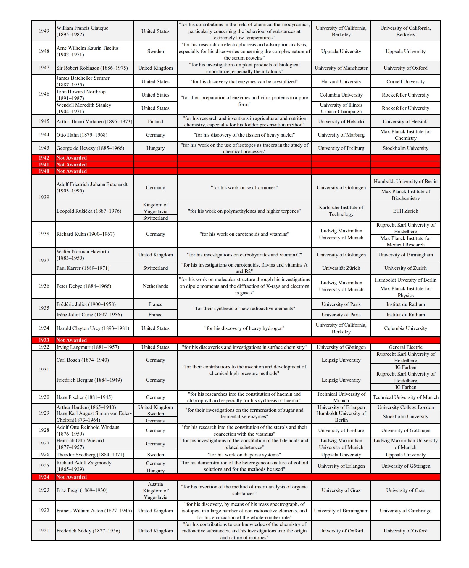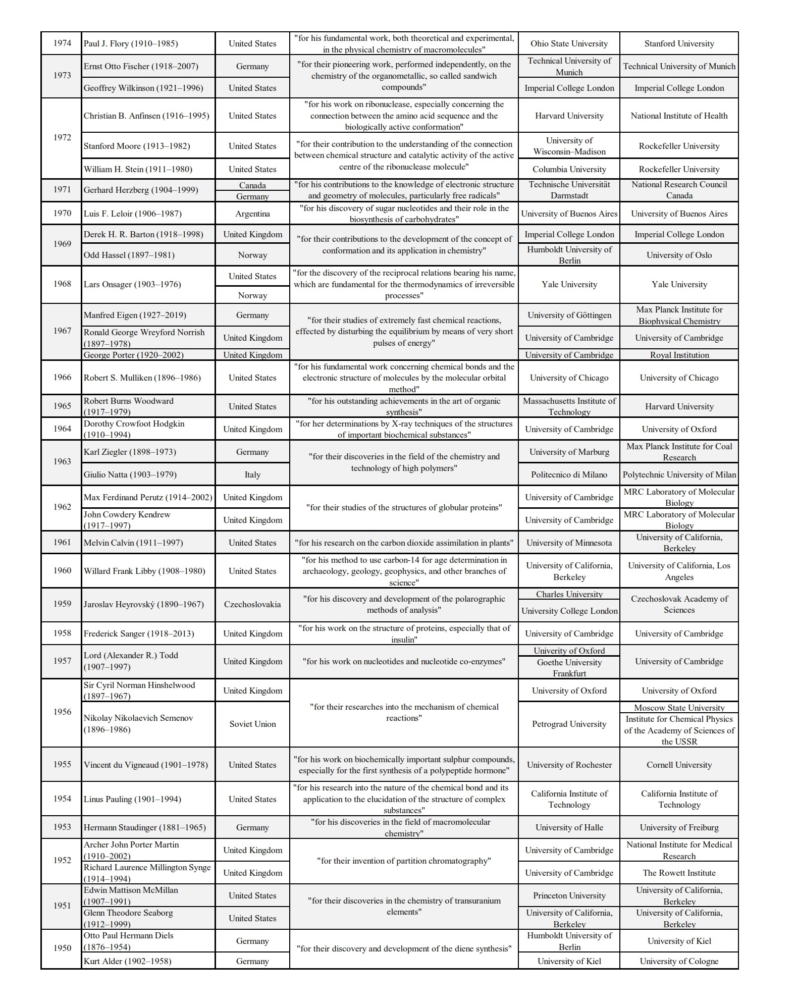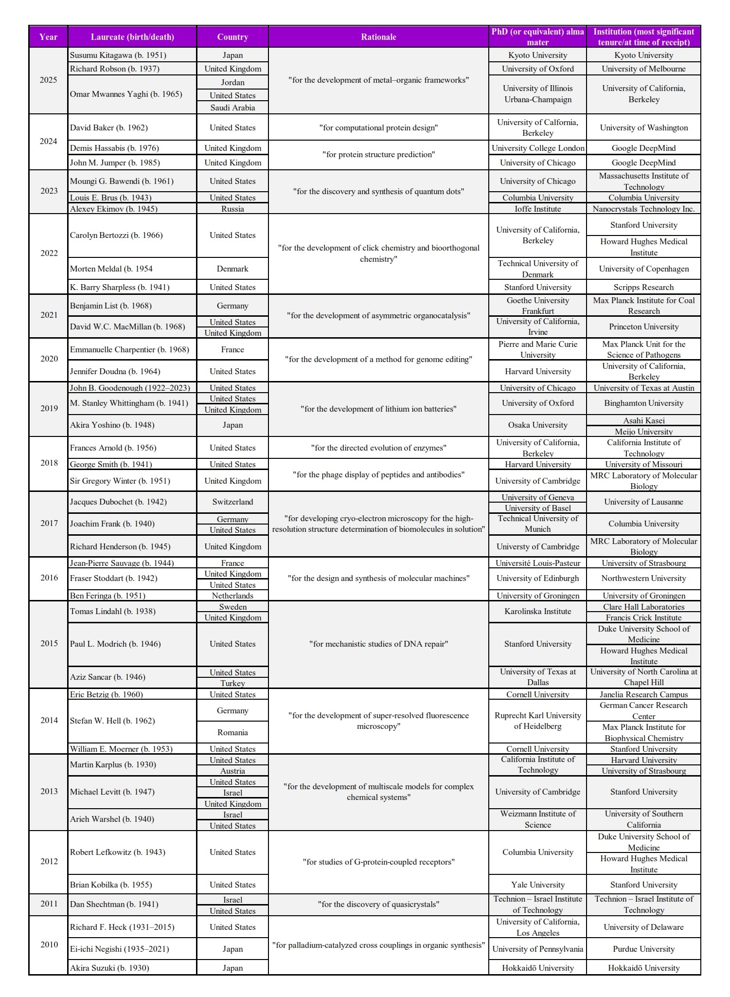 Nobel Laureates: Chemistry